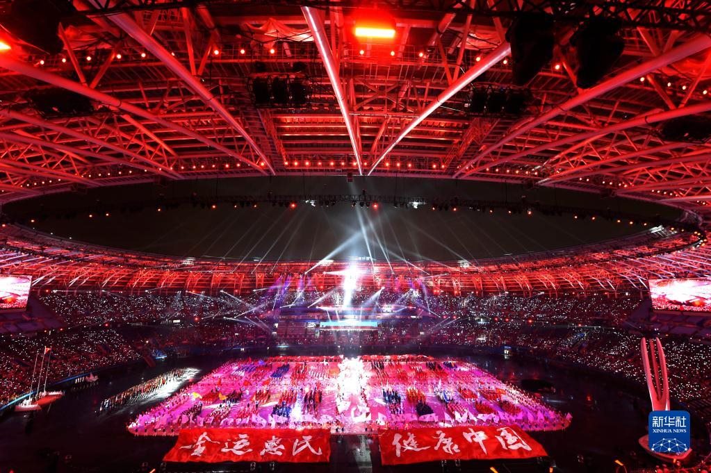 第十三屆全國(guó)運(yùn)動(dòng)會(huì)開幕式在天津奧林匹克中心體育場(chǎng)舉行(2017年8月27日攝)。新華社發(fā)(白禹 攝)