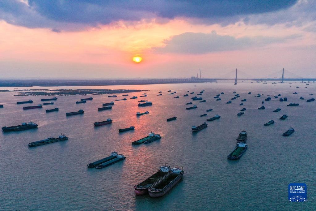 這是2021年10月25日拍攝的長江南通段(無人機照片)。新華社記者 李博 攝