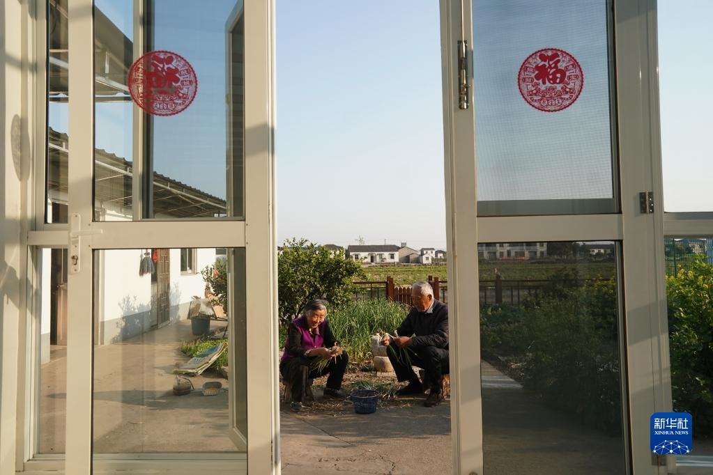 鎮(zhèn)江市世業(yè)鎮(zhèn)永茂圩自然村村民洪家勇(右)和老伴楊松華在家中忙家務(2020年4月13日攝)。新華社記者 季春鵬 攝