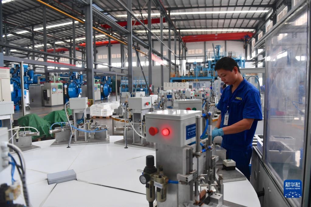 2019年5月20日,江西金力永磁科技股份有限公司的工人在車間內工作。 新華社記者 胡晨歡 攝